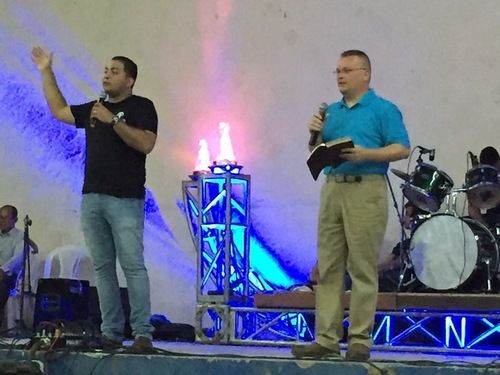 (Below) Evangelist DeWayne Howard preaching a campaign in Rivas, Nicaragua of over 1,000 in attendance.