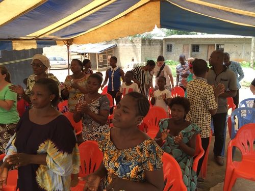 The first service for the new church plant in N'dotre, Africa. The tent was full and the power of the Holy Spirit was evident as people kept coming to see what was happening under that tent.